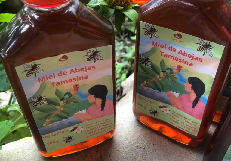 TAMESINA S.A.S. es una empresa de Támesis, Antioquia, dedicada a ofrecer experiencias auténticas que combinan café especial, turismo rural y productos artesanales. Cultivamos café de origen en procesos honey, lavado y natural, destacando la calidad y el respeto por la tierra. Elaboramos miel pura de abejas y arequipe artesanal de café, productos que reflejan la esencia del campo colombiano.